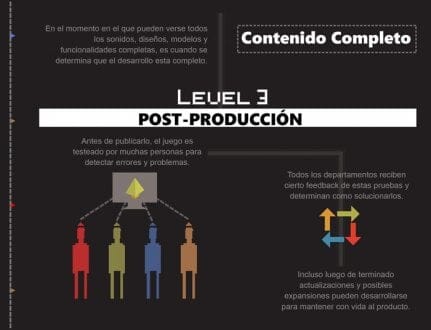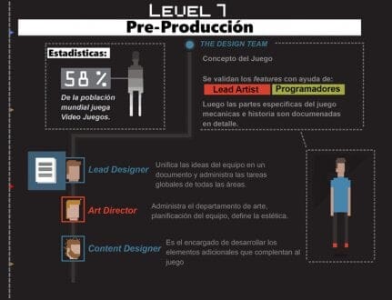 El equipo de Diseño trabaja sobre el concepto del juego. Se validan las características (features) con ayuda de un Lead Artist y de Programadores.