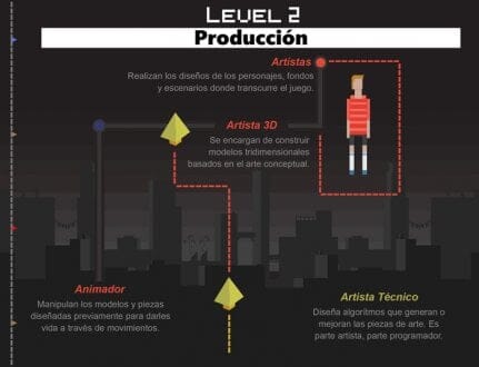 Artistas: Realizan los diseños de personajes, fondos y escenarios donde transcurre el juego.