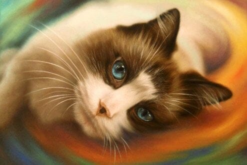 ¿Qué técnica y materiales usaste por ejemplo en la ilustración del gato (Blue) y en qué detalles dirías que reside el hecho de que sea tan realista el efecto final, casi como una fotografía?