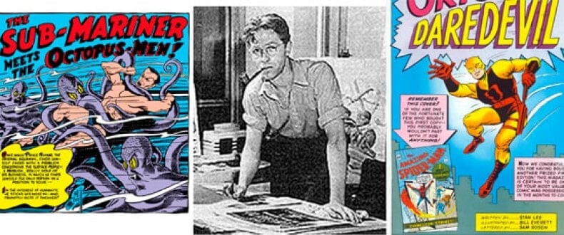 Lo que intento decir es que nada es tan sencillo como parece. Los que vivimos dentro del mundillo de la historieta -que bien vendría dejarlo claro, sigue siendo un sótano con un montón de inadaptados- conocemos los nombres de Jack Kirby (cocreador de Los cuatro Fantásticos y Los Vengadores, y creador de Los Eternos, El Cuarto Mundo y Etrigan, entre muchas otras cosas), Bill Everett (creador de Namor y cocreador de Daredevil) o Steve Ditko (cocreador de Spider-Man y Dr. Strange), por dar un par de ejemplos. Nombres que no llegaron al gran público que hoy conoce el Universo Cinematográfico de Marvel. Artistas de gran talento, que tal vez no tuvieron la habilidad que tuvo Stan para venderse y vender los personajes de la editorial donde él escribía.
