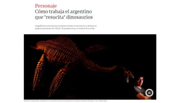 En la nota, Blanco cuenta la fascinación que le generan desde niño y cómo trabaja junto a paleontólogos para "resucitar" a los animales prehistóricos con la mayor rigurosidad posible, más allá de las licencias artísticas de sus esculturas o ilustraciones. También aborda el pensamiento cultural acerca de los dinosaurios.