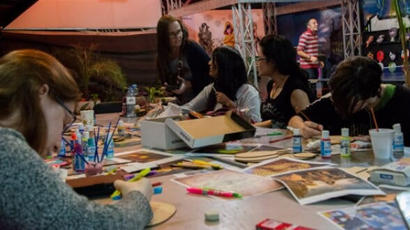 En este marco, hubo música que marcó el ritmo de los partidos y hasta proyecciones de diferentes escenas de Ping Pong: the animation, miniserie de estilo anime. Mientras tanto, en el sector del patio, más de 20 participantes ilustraban y pintaban las paletas en un concurso.