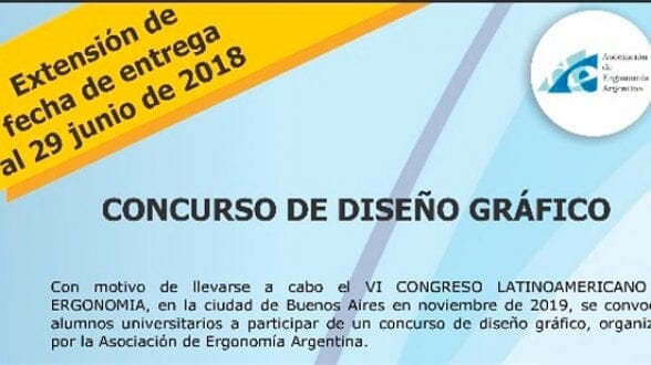 En el marco del VI Congreso Latinoamericano de Ergonomía que se realizará en la Ciudad de Buenos Aires durante noviembre de 2019, la Asociación de Ergonomía Argentina convoca a alumnos universitarios de Diseño Gráfico y Diseño en Comunicación Visual a un Concurso de Diseño Gráfico.