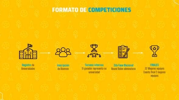 La inscripción inicial finalizará en agosto y dará paso al registro para los torneos internos, que se desarrollará del 1 al 20 de septiembre. Tras la competencia interna que tendrán lugar del 21 al 26 de septiembre, un ganador de cada universidad accederá a la segunda fase con formato Round Robin (de septiembre a noviembre). Luego, los cuartos de final, semifinales y la gran final tendrán lugar entre noviembre y diciembre.